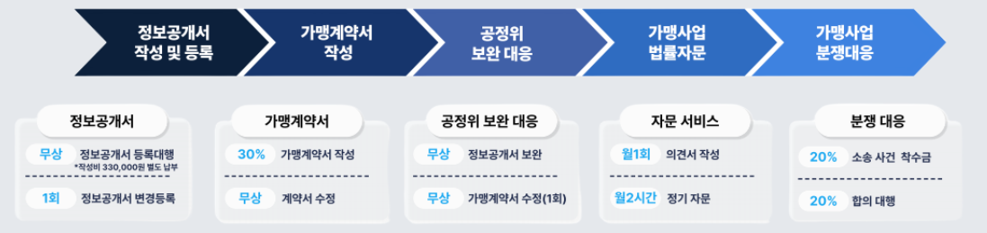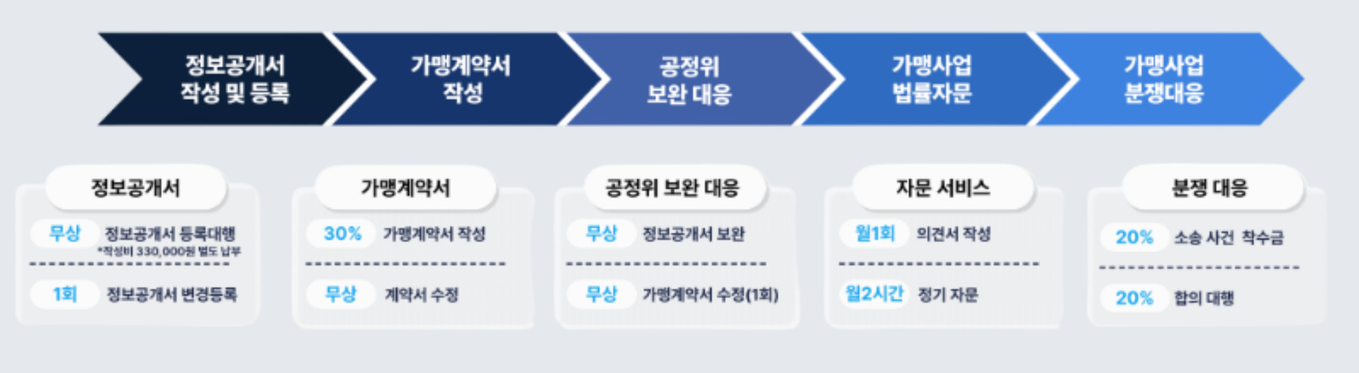 법률사무소 섬김 프랜차이즈 법률센터는 가맹사업의 설계부터 계약 체결, 공정위 신고 및 대응, 분쟁 발생 시 소송까지 전 과정을 아우르는 전문 법률 서비스를 제공합니다. 또한 본 센터는 정보공개서 작성 및 등록, 가맹계약서 작성 및 검토, 공정거래위원회 조사 대응, 가맹본부 및 가맹점 간의 분쟁 해결 등 가맹사업 운영에 필요한 핵심 법률 업무를 원스톱으로 지원합니다.